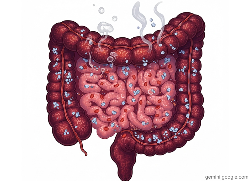 - Каловые массы выходят со слизью, гноем или наличием тоненьких прожилок крови.